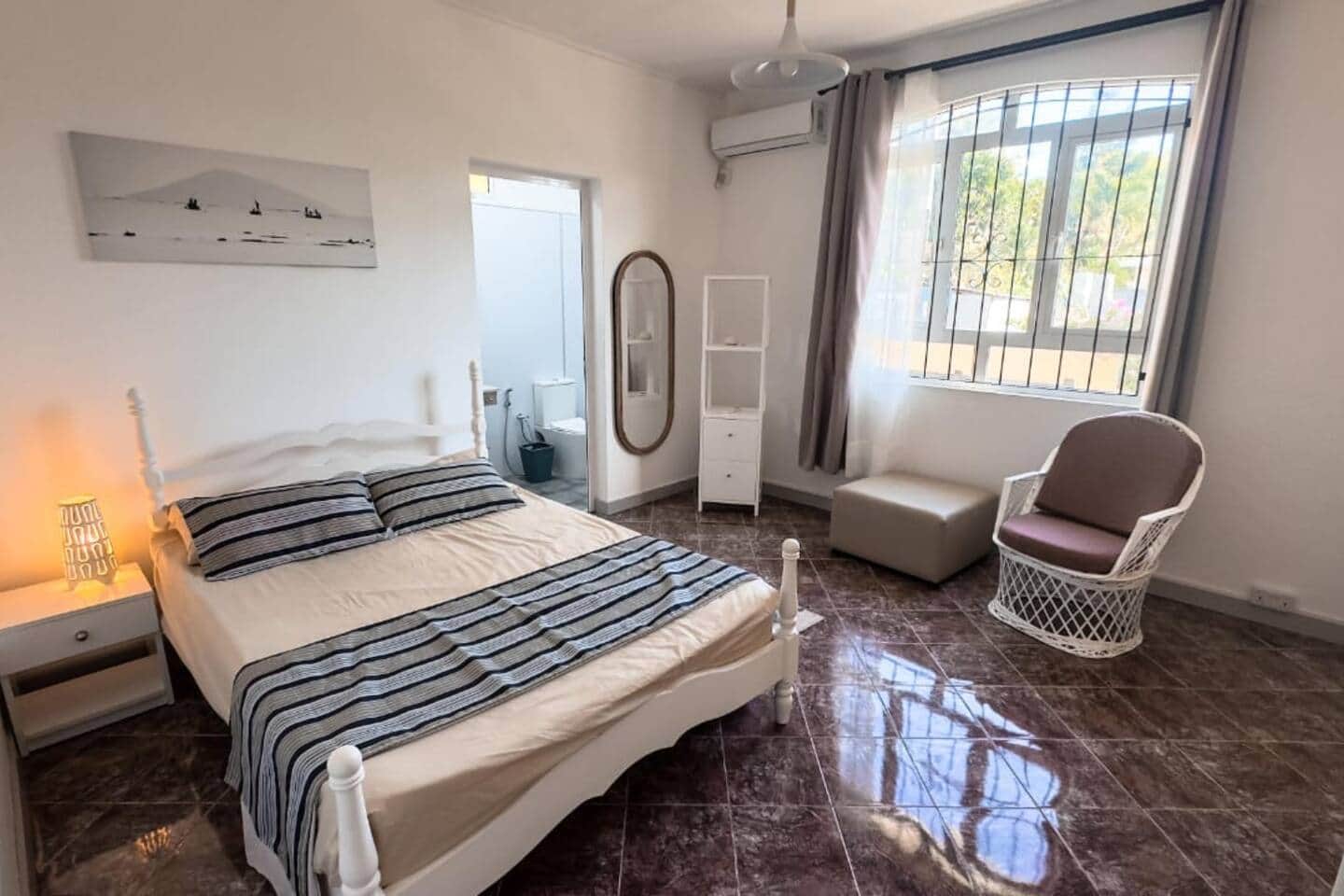 Spacious, simple, and comfortable. This house is just a short stroll from the sea and local shops. It offers bright living spaces, large air-conditioned bedrooms, a fully equipped kitchen, cozy lounge with TV, and a sunlit dining area. Modern bathrooms and tropical garden space make it ideal to unwind after a day of surf or exploring. Tucked in a quiet coastal neighborhood, it’s perfect for families, ocean lovers, or anyone looking to slow down.